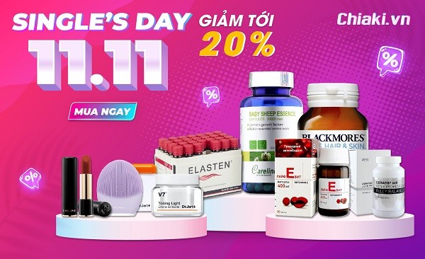 Để bảo vệ sức khỏe và làn da thật tốt, ngoài những dòng sản phẩm dưỡng da đến từ mỹ phẩm thì các dòng thực phẩm chức năng cũng là dòng sản phẩm bán chạy nhất tại Chiaki. Trong ngày 11/11, tất cả các mặt hàng của dòng thực phẩm chức năng đều được giảm giá lên đến 20%, cùng ngàn voucher hấp dẫn cho mỗi đơn hàng. Đặc biệt, được miễn phí giao hàng toàn quốc trong ngày này.