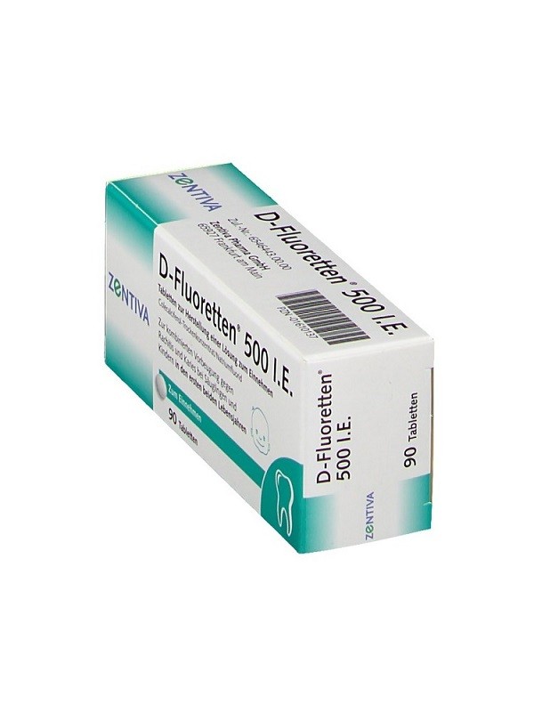 - D- Fluoretten 500 I.E 90 viên có mã vạch: PZN – 01610137