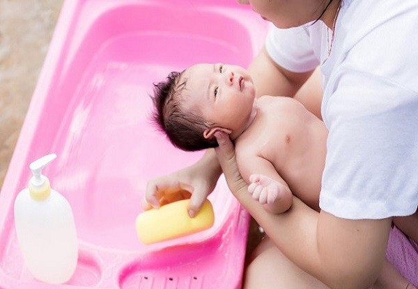Trẻ sơ sinh chưa rụng rốn, mẹ không nên thả bé vào chậu nước khi tắm