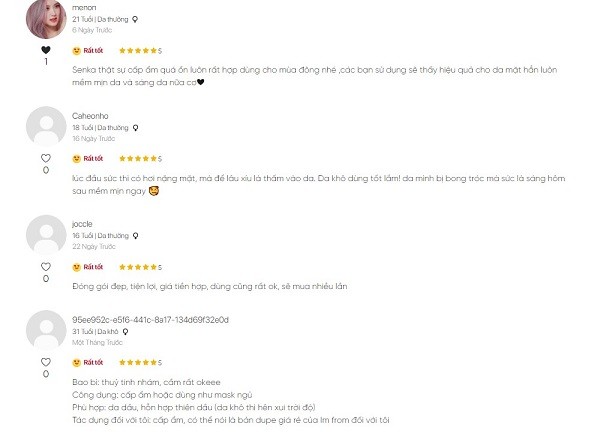 Đánh giá từ người dùng khi sử dụng kem dưỡng ẩm senka