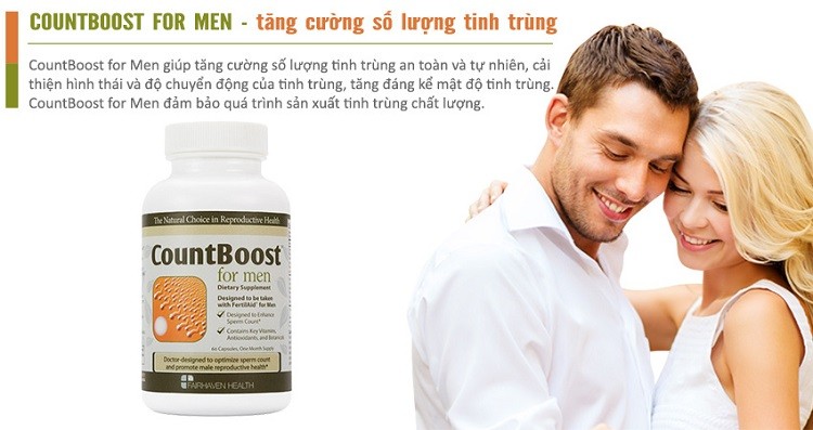 - CountBoost For Men được các chuyên gia khuyên dùng để cải thiện tình trạng vô sinh, hiếm muộn ở nam giới.
