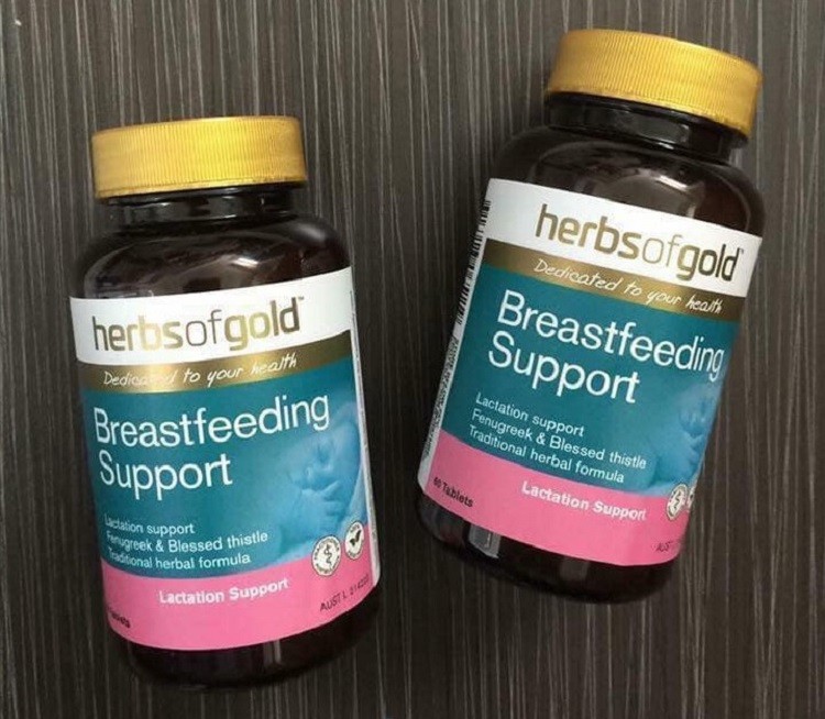 Herbs of Gold Breastfeeding Support là sản phẩm có xuất xứ từ Úc, chiết xuất từ thành phần thảo dược tự nhiên chủ yếu là cỏ cà ri và cây kế sữa. Sản phẩm có tác dụng tốt trong hỗ trợ mẹ sau sinh cải thiện số lượng và chất lượng sữa. Viên uống là sản phẩm uiy tín được bán tại hầu hết các chuỗi nhà thuốc lớn tại Úc.