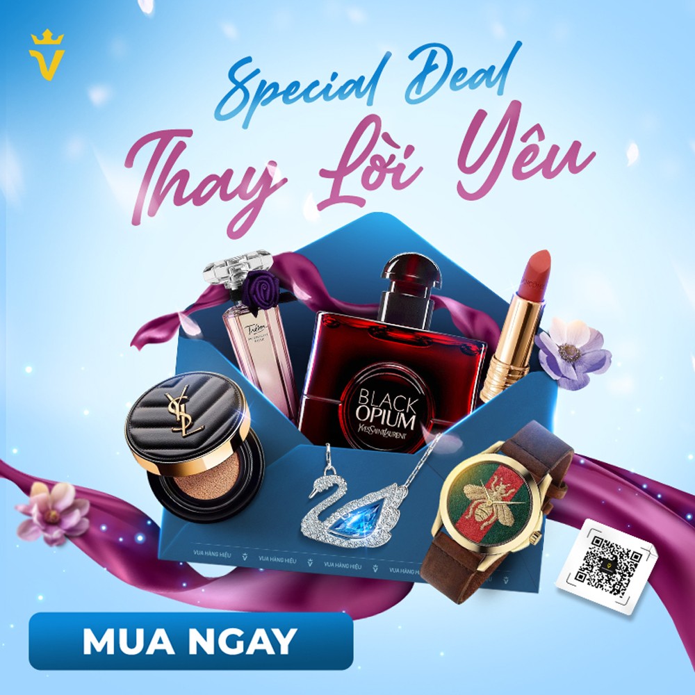 Chương trình Special Deal - Thay Lời Yêu mang đến cơ hội vàng để bạn chọn những món quà ý nghĩa hoặc tự thưởng các sản phẩm chính hãng từ các thương hiệu hàng đầu. Đừng quên đặt hàng vào 19/10/2025 để nhận hộp quà son môi miễn phí khi mua son làm quà tặng, và áp dụng mã giảm giá phù hợp để tiết kiệm tối đa. Truy cập ngay https://vuahanghieu.com hoặc tải app Vua Hàng Hiệu để săn deal cực chất!
